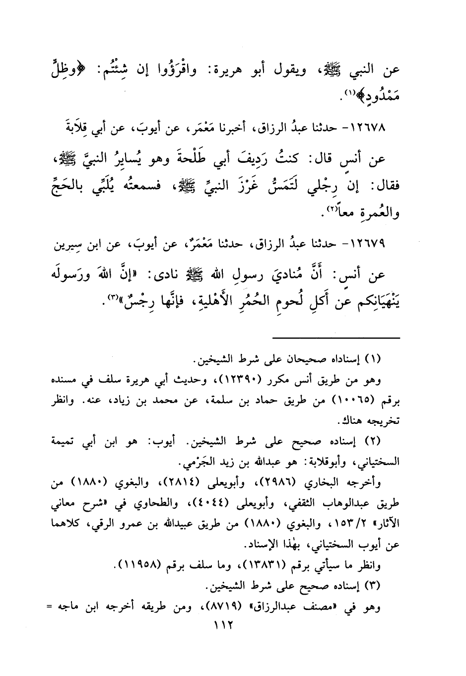 ١٢٦٧٩ - حَدَّثَنَا عَبْدُ الرَّزَّاقِ، حَدَّثَنَا مَعْمَرٌ، عَنْ أَيُّوبَ، عَنِ ابْنِ سِيرِينَ، عَنْ أَنَسٍ، أَنَّ مُنَادِيَ رَسُولِ اللهِ صَلَّى اللهُ عَلَيْهِ وَسَلَّمَ نَادَى: " إِنَّ اللهَ وَرَسُولَهُ يَنْهَيَانِكُمْ عَنْ أَكْلِ لُحُومِ الْحُمُرِ الْأَهْلِيَّةِ، فَإِنَّهَا رِجْسٌ " (٣)