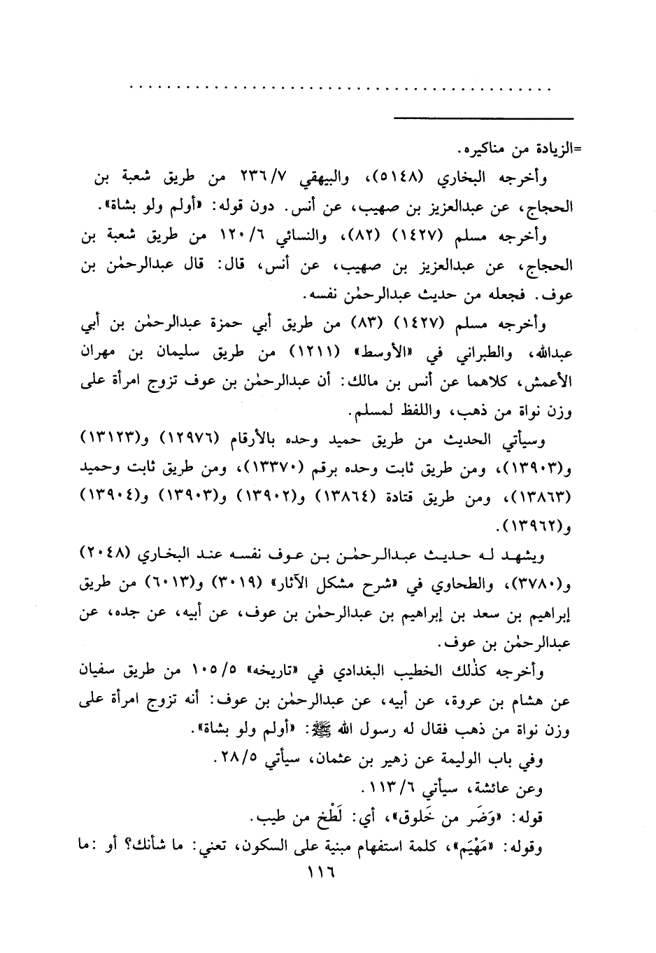 وأخرجه مسلم (١٤٢٧) (٨٢) ، والنسائي ٦/١٢٠ من طريق شعبة بن الحجاج، عن عبد العزيز بن صهيب، عن أنس، قال: قال عبد الرحمن بن عوف. فجعله من حديث عبد الرحمن نفسه.