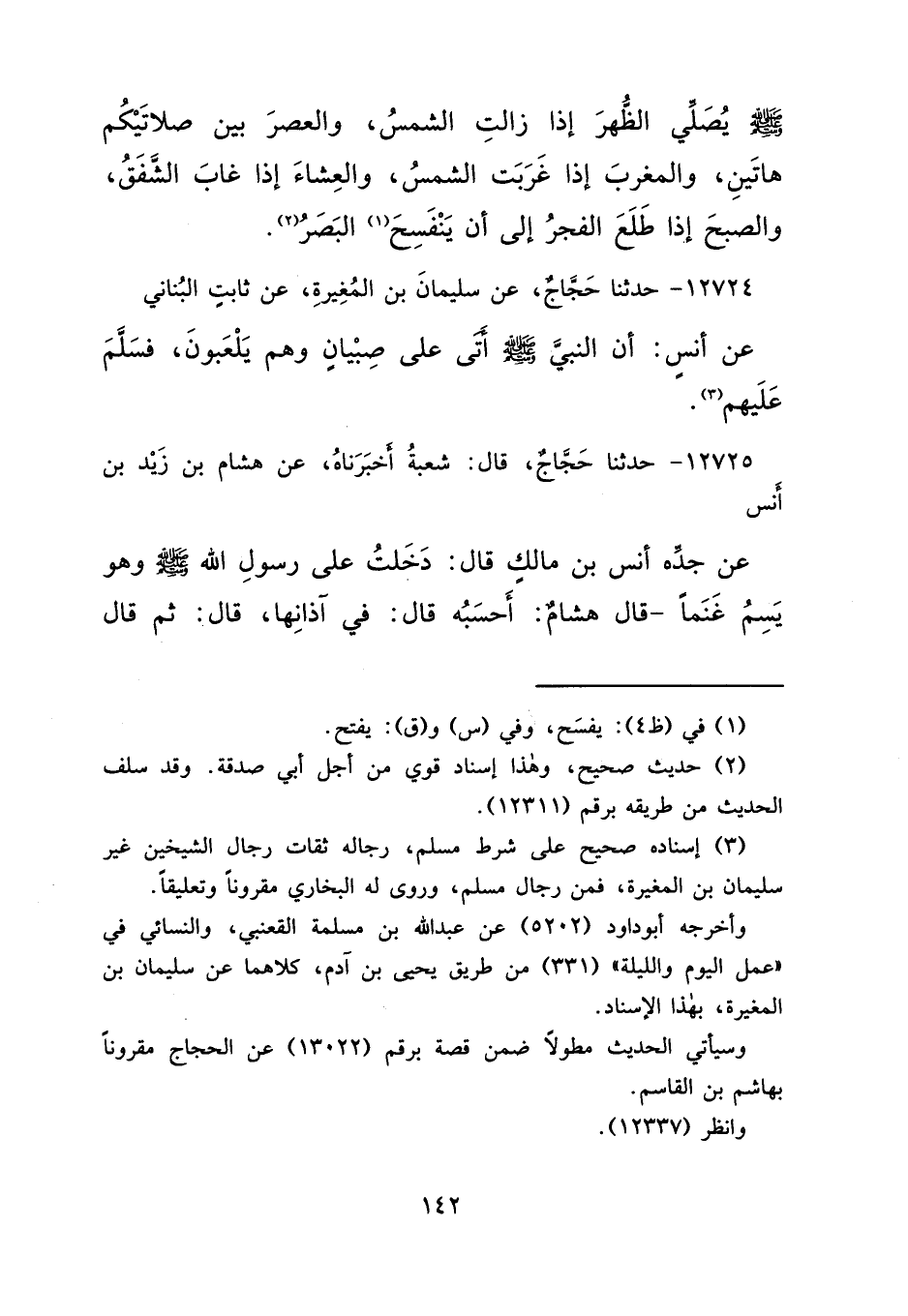 ١٢٧٢٤ - حَدَّثَنَا حَجَّاجٌ، عَنْ سُلَيْمَانَ بْنِ الْمُغِيرَةِ، عَنْ ثَابِتٍ الْبُنَانِيِّ، عَنْ أَنَسٍ، " أَنَّ النَّبِيَّ صَلَّى اللهُ عَلَيْهِ وَسَلَّمَ أَتَى عَلَى صِبْيَانٍ وَهُمْ يَلْعَبُونَ، فَسَلَّمَ عَلَيْهِمْ " (٣)