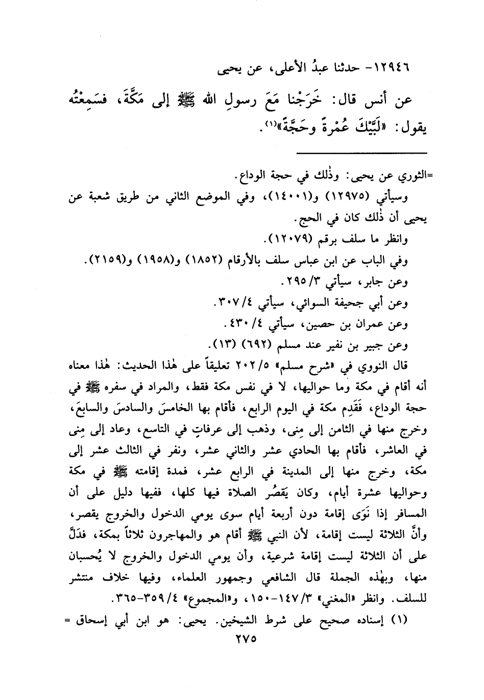 وسيأتي (١٢٩٧٥) و (١٤٠٠١) ، وفي الموضع الثاني من طريق شعبة عن يحيى أن ذلك كان في الحج.
