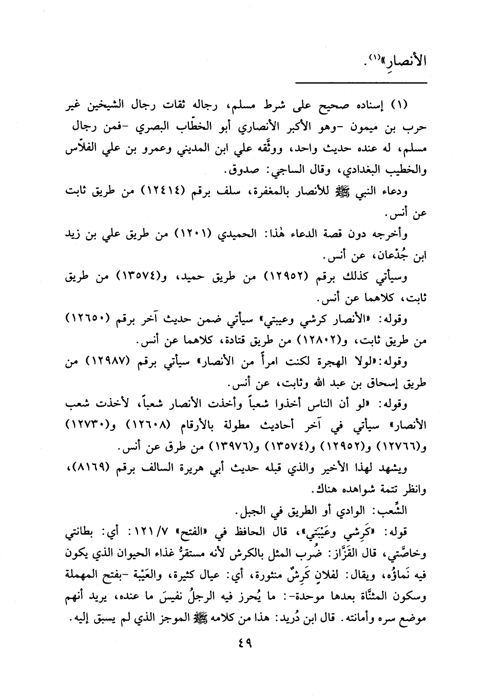 وقوله: "لو أن الناس أخذوا شعباً وأخذت الأنصار شعباً، لأخذت شعب الأنصار" سيأتي في آخر أحاديث مطولة بالأرقام له (١٢٦٠٨) و (١٢٧٣٠) و (١٢٧٦٦) و (١٢٩٥٢) و (١٣٥٧٤) و (١٣٩٧٦) من طرق عن أنس.