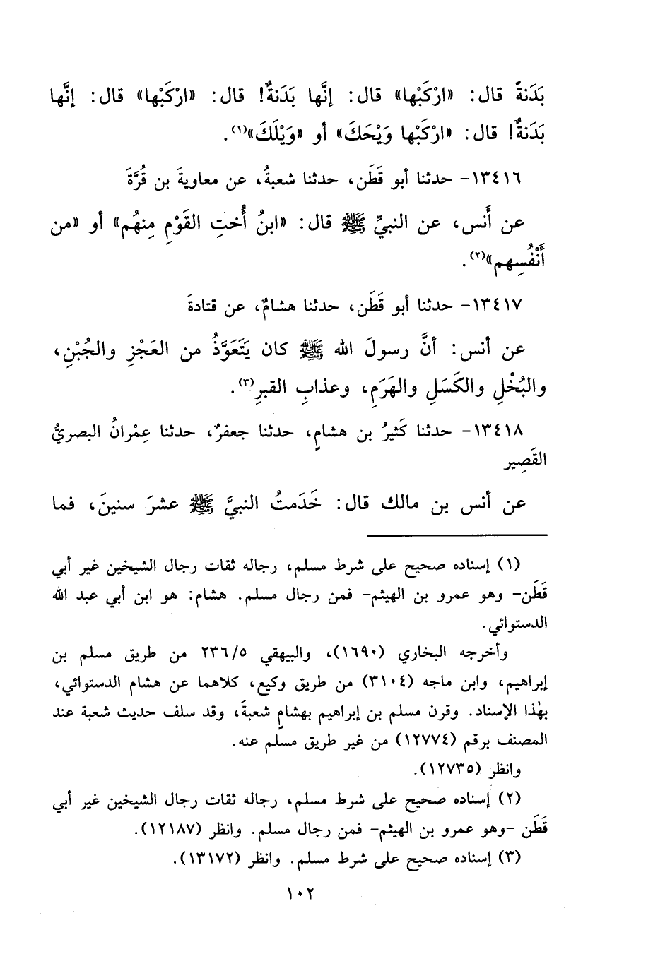 بَدَنَةً، قَالَ: " ارْكَبْهَا " قَالَ: إِنَّهَا بَدَنَةٌ قَالَ: " ارْكَبْهَا " قَالَ: إِنَّهَا بَدَنَةٌ قَالَ: " ارْكَبْهَا، وَيْحَكَ أَوْ وَيْلَكَ " (١)
