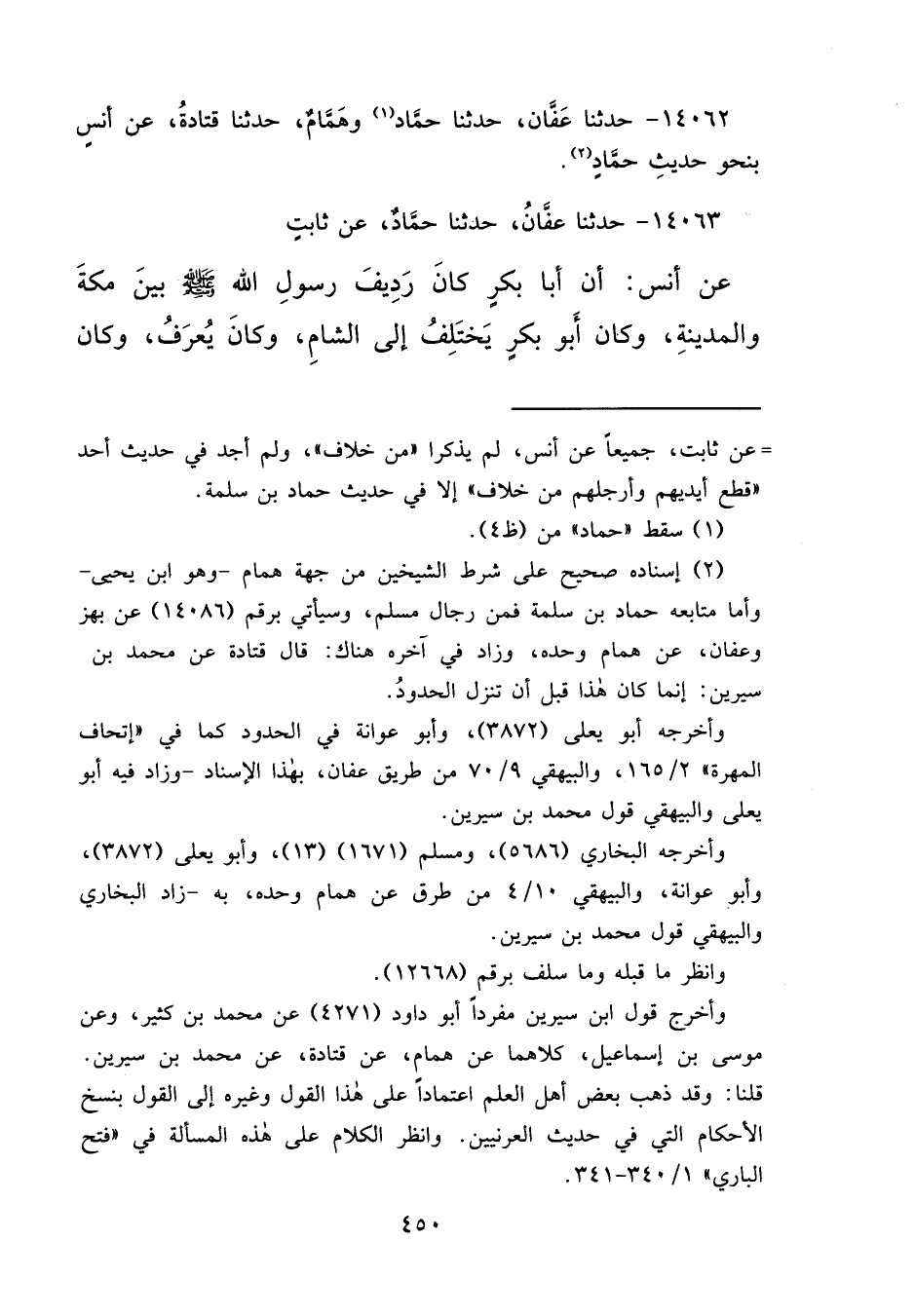 ١٤٠٦٢ - حَدَّثَنَا عَفَّانُ، حَدَّثَنَا حَمَّادٌ، (١) وَهَمَّامٌ، حَدَّثَنَا قَتَادَةُ، عَنْ أَنَسٍ بِنَحْوِ حَدِيثِ حَمَّادٍ (٢)