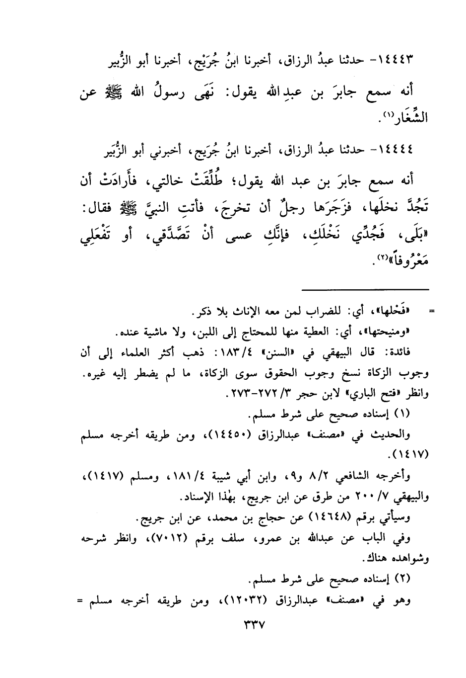 ١٤٤٤٣ - حَدَّثَنَا عَبْدُ الرَّزَّاقِ، أَخْبَرَنَا ابْنُ جُرَيْجٍ، أَخْبَرَنَا أَبُو الزُّبَيْرِ، أَنَّهُ: سَمِعَ جَابِرَ بْنَ عَبْدِ اللهِ، يَقُولُ: " نَهَى رَسُولُ اللهِ صَلَّى اللهُ عَلَيْهِ وَسَلَّمَ عَنِ الشِّغَارِ " (١)