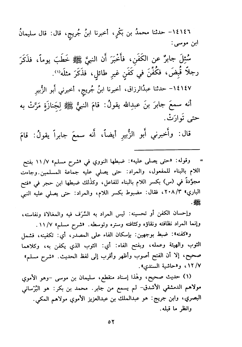 ١٤١٤٦ - حَدَّثَنَا مُحَمَّدُ بْنُ بَكْرٍ، أَخْبَرَنَا ابْنُ جُرَيْجٍ، قَالَ: قَالَ سُلَيْمَانُ بْنُ مُوسَى، سُئِلَ جَابِرٌ عَنِ الْكَفَنِ، فَأَخْبَرَ أَنَّ النَّبِيَّ صَلَّى اللهُ عَلَيْهِ وَسَلَّمَ خَطَبَ يَوْمًا، فَذَكَرَ رَجُلًا قُبِضَ فَكُفِّنَ فِي كَفَنٍ غَيْرِ طَائِلٍ، فَذَكَرَ مِثْلَهُ (١)