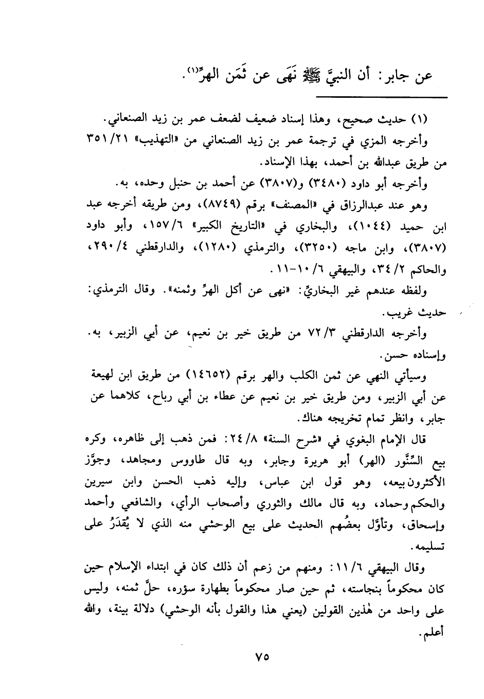 عَنْ جَابِرٍ، أَنَّ النَّبِيَّ صَلَّى اللهُ عَلَيْهِ وَسَلَّمَ: " نَهَى عَنْ ثَمَنِ الْهِرِّ " (١)