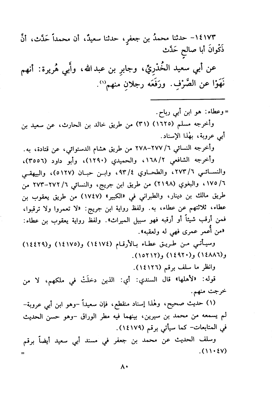 وسيأتي من طريق عطاء بالأرقام (١٤١٧٤) و (١٤١٧٥) و (١٤٤٢٩) و (١٤٨٨٦) و (١٤٩٢٠) و (١٥٢١٢) .