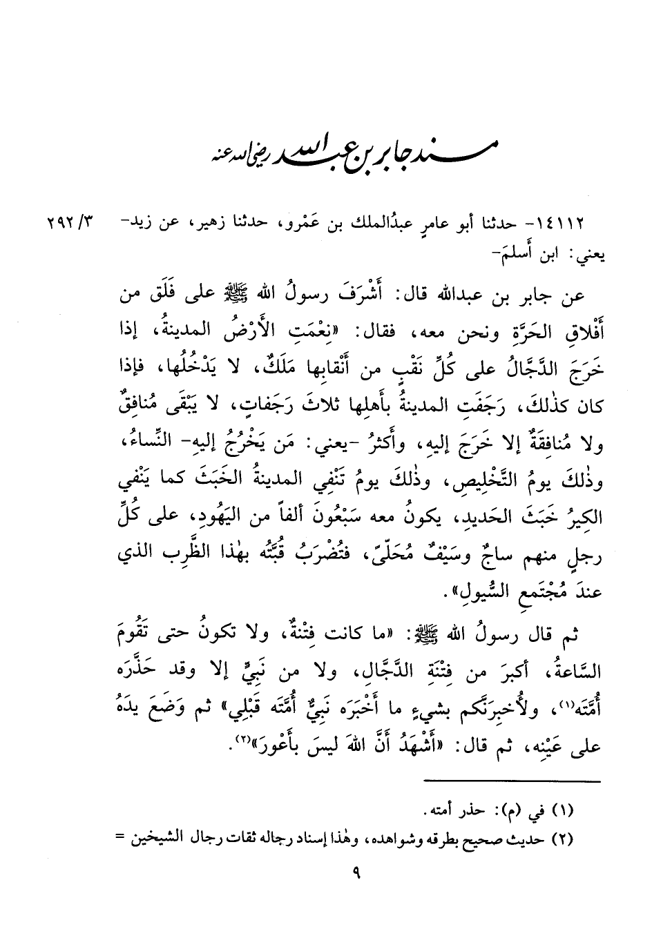 مُسْنَدُ جَابِرِ بْنِ عَبْدِ اللهِ رَضِيَ اللهُ عَنْهُ