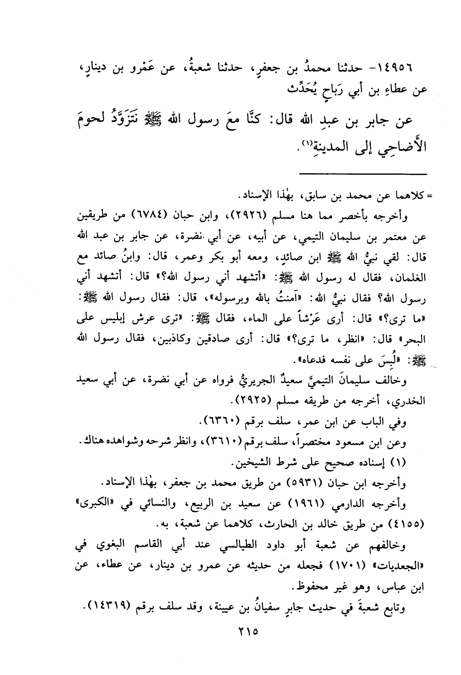وتابع شعبةَ في حديث جابر سفيانُ بن عيينة، وقد سلف برقم (١٤٣١٩) .