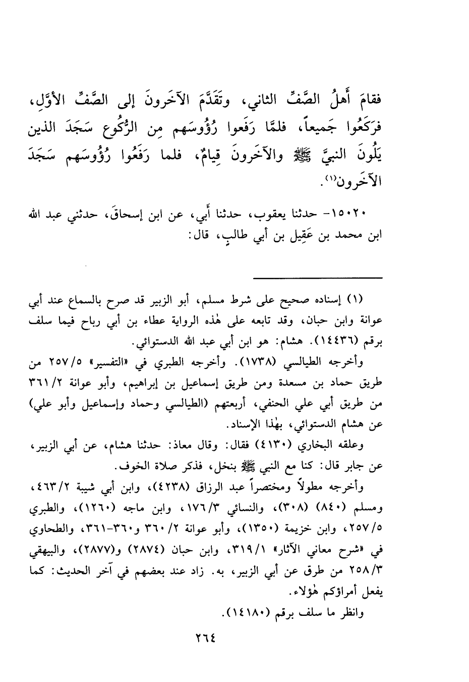 وعلقه البخاري (٤١٣٠) فقال: وقال معاذ: حدثنا هشام، عن أبي الزبير، عن جابر قال: كنا مع النبي صَلَّى اللهُ عَلَيْهِ وَسَلَّمَ بنخل، فذكر صلاة الخوف.