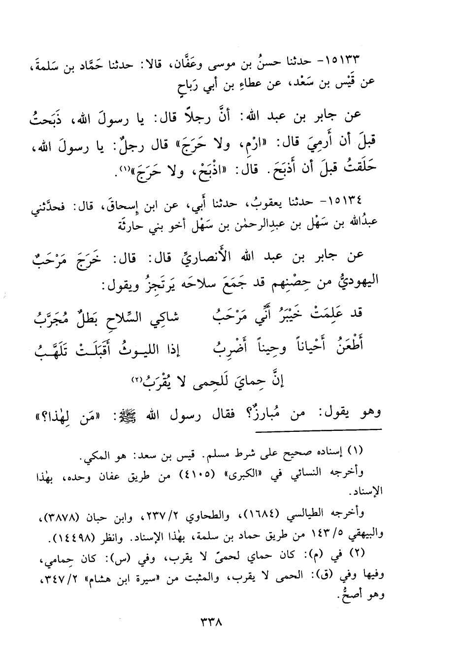 (٢) في (م) : كان حماي لحمىَ لا يقرب، وفي (س) : كان حِمامي، وفيها وفي (ق) : الحمى لا يقرب، والمثبت من "سيرة ابن هشام" ٢/٣٤٧، وهو أصحُ.