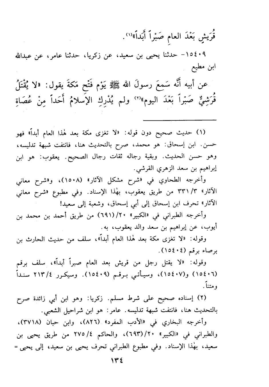 (٢) إسناده صحيح على شرط مسلم. زكريا: وهو ابن أبي زائدة صرح بالتحديث هنا، فانتفت شبهة تدليسه. عامر: هو ابن شراحيل الشعبي.