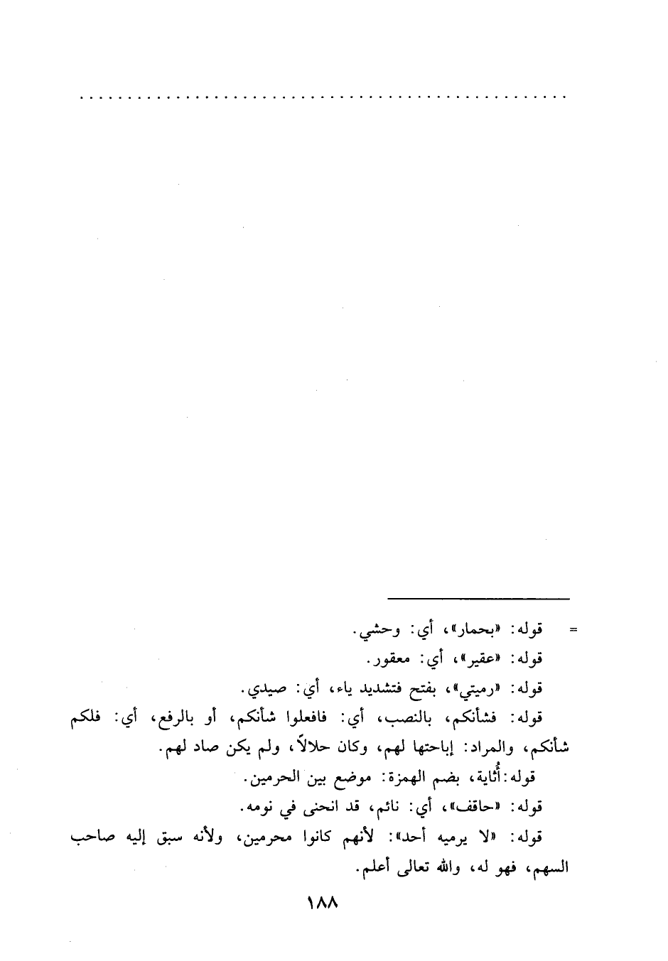 قوله: "لا يرميه أحد": لأنهم كانوا محرمين، ولأنه سبق إليه صاحب السهم، فهو له، والله تعالى أعلم.