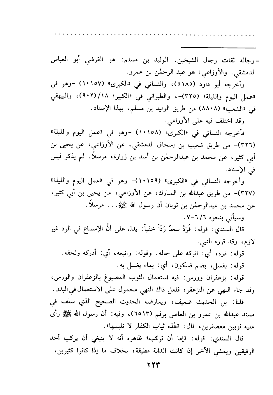 = رجاله ثقات رجال الشيخين. الوليد بن مسلم: هو القرشي أبو العباس الدمشقي. والأوزاعي: هو عبد الرحمن بن عمرو.