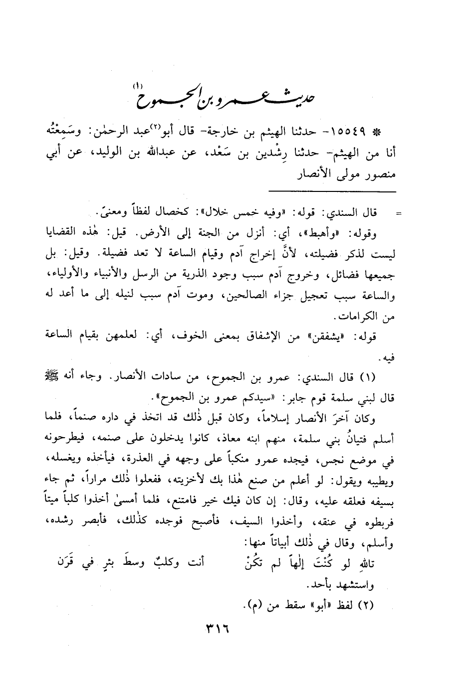 حَدِيثُ عَمْرِو بْنِ الْجَمُوحِ (١)