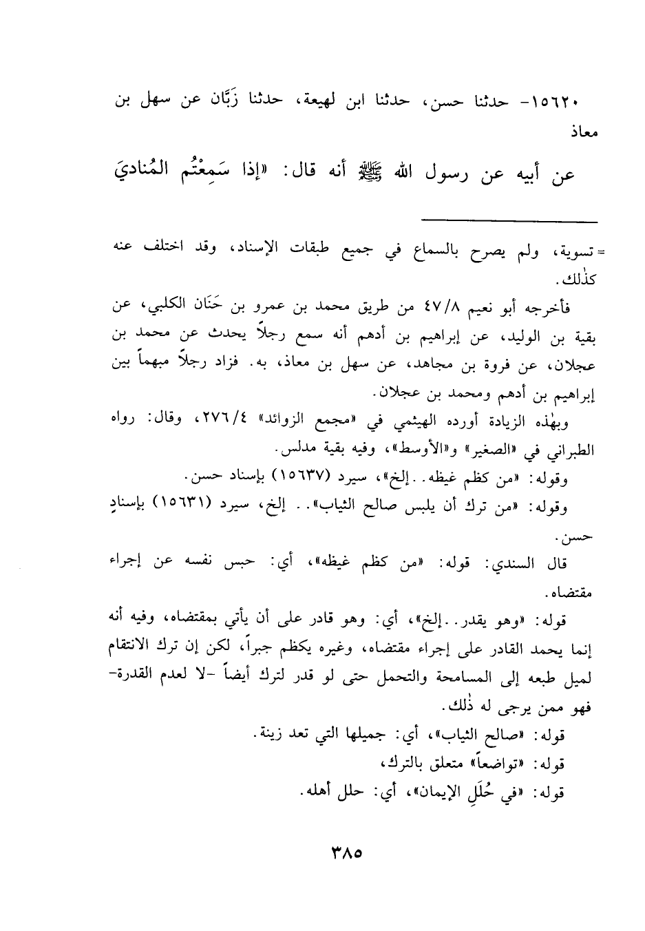 وقوله: "من كظم غيظه.. إلخ "، سيرد (١٥٦٣٧) بإسناد حسن.