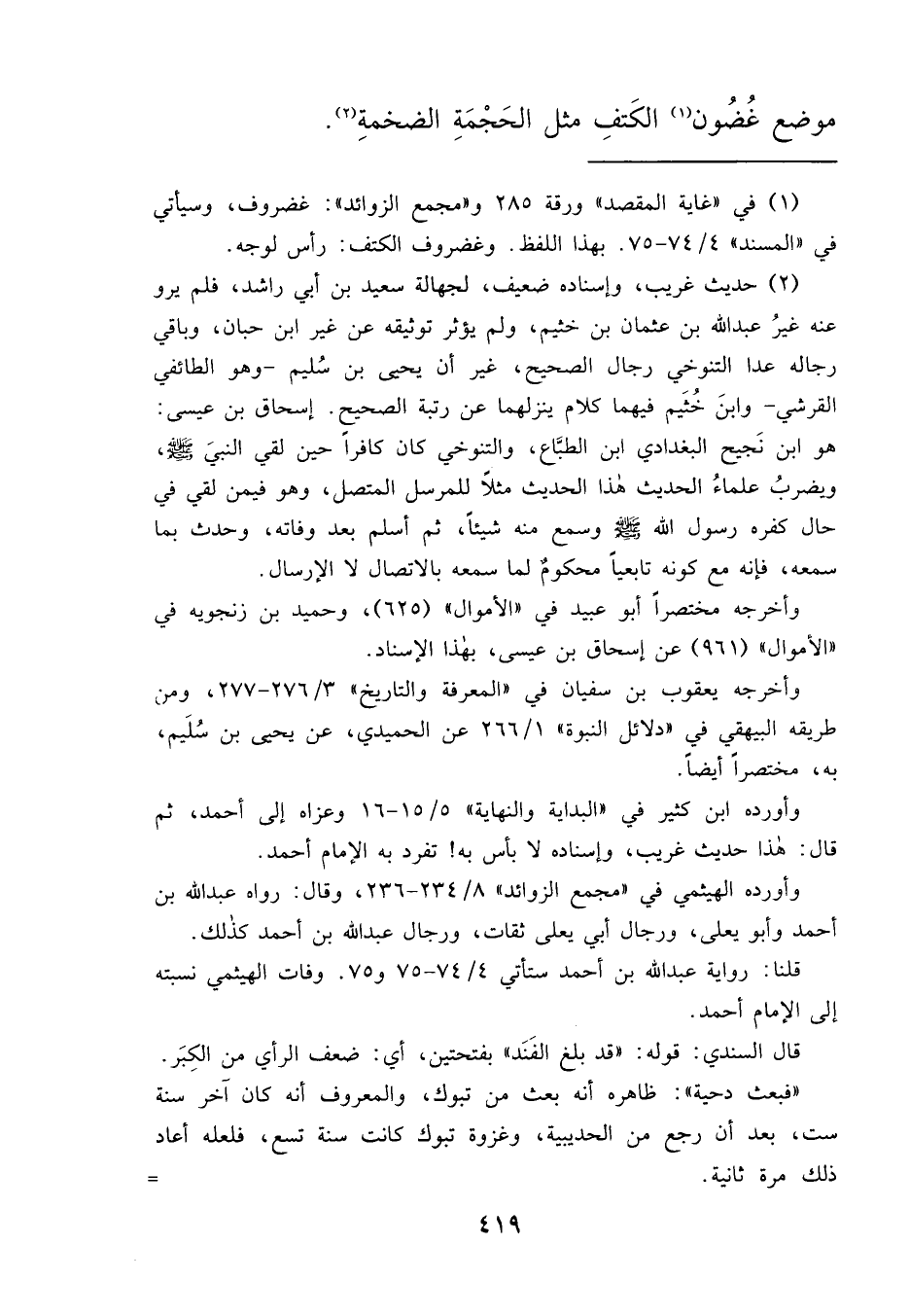 مَوْضِعِ غُضُونِ (١) الْكَتِفِ مِثْلِ الْحَجْمَةِ الضَّخْمَةِ (٢)