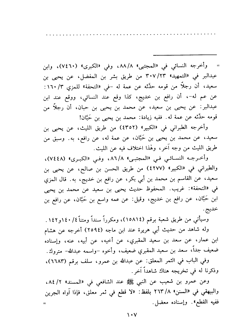 = وأخرجه النسائي في "المجتبى" ٨/٨٨، وفي "الكبرى" (٧٤٦٠) ، وابن عبد البر في "التمهيد" ٢٣/٣٠٧ من طريق بشر بن المفضل، عن يحيى بن سعيد، أن رجلاً من قومه حدَّثه عن عمة له- في "التحفة" للمزي ٣/١٦٠: عن عم له-، أن رافع بن خديج، كذا وقع عند النسائي، ووقع عند ابن