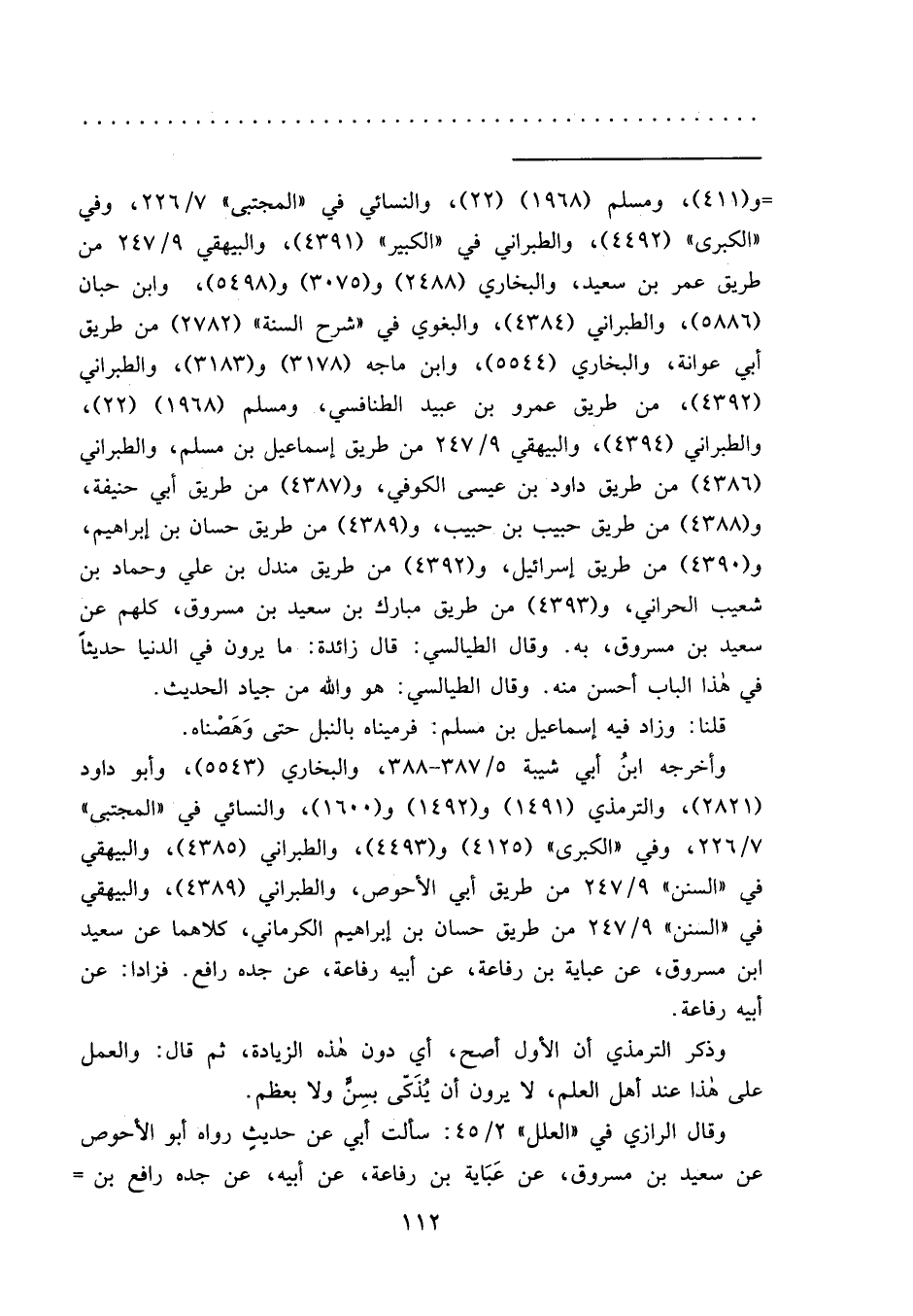 وقال الرازي في "العلل" ٢/٤٥: سألت أبي عن حديثٍ رواه أبو الأحوص عن سعيد بن مسروق، عن عَبَاية بن رفاعة، عن أبيه، عن جده رافع بن=