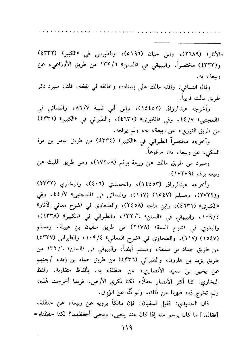 وسيرد من طريق مالك عن ربيعة برقم (١٧٢٥٨) ، ومن طريق الليث عن ربيعة برقم (١٧٢٧٩) .