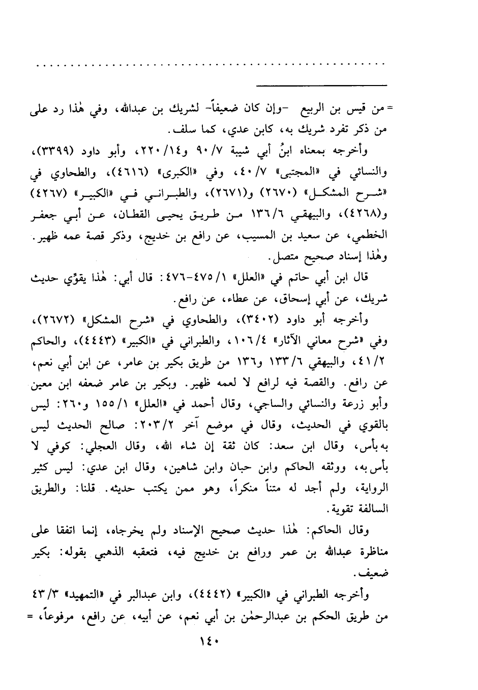 وقال الحاكم: هذا حديث صحيح الإسناد ولم يخرجاه، إنما اتفقا على مناظرة عبد الله بن عمر ورافع بن خديج فيه، فتعقبه الذهبي بقوله: بكير ضعيف.