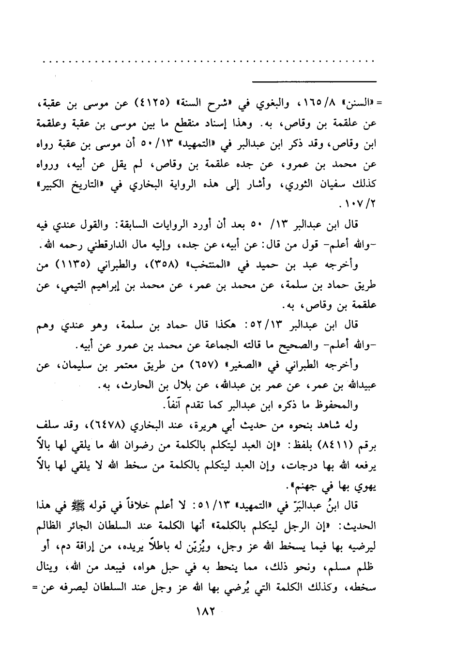 = "السنن" ٨/١٦٥، والبغوي في "شرح السنة" (٤١٢٥) عن موسى بن عقبة، عن علقمة بن وقاص، به. وهذا إسناد منقطع ما بين موسى بن عقبة وعلقمة ابن وقاص، وقد ذكر ابن عبد البر في "التمهيد" ١٣/٥٠ أن موسى بن عقبة رواه عن محمد بن عمرو، عن جده علقمة بن وقاص، لم يقل عن أبيه، ورواه كذلك سفيان الثوري، وأشار إلى هذه الرواية البخاري في "التاريخ الكبير" ٢/١٠٧.