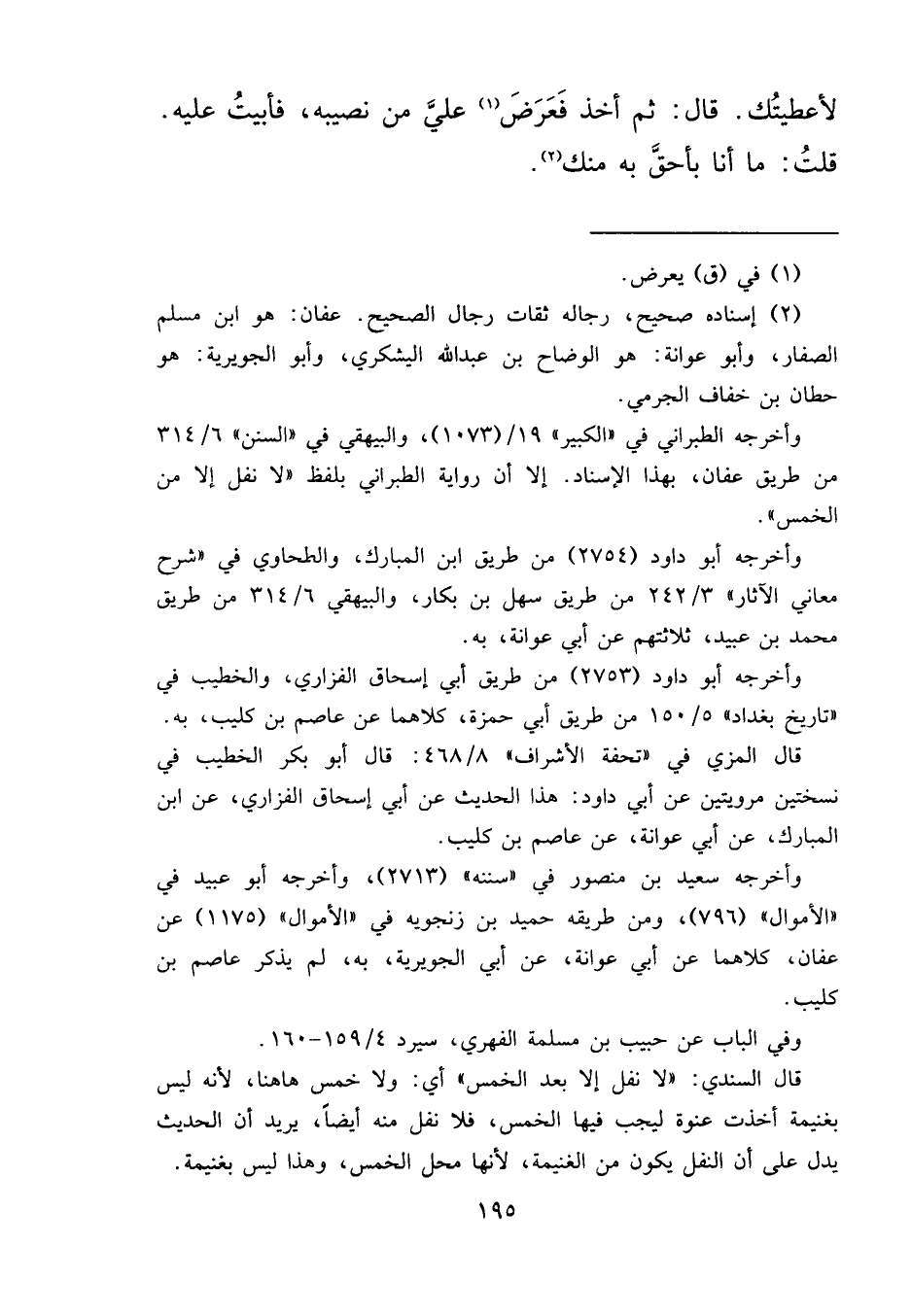 (٢) إسناده صحيح، رجاله ثقات رجال الصحيح. عفان: هو ابن مسلم الصفار، وأبو عوانة: هو الوضاح بن عبد الله اليشكري، وأبو الجويرية: هو حطان بن خفاف الجرمي.