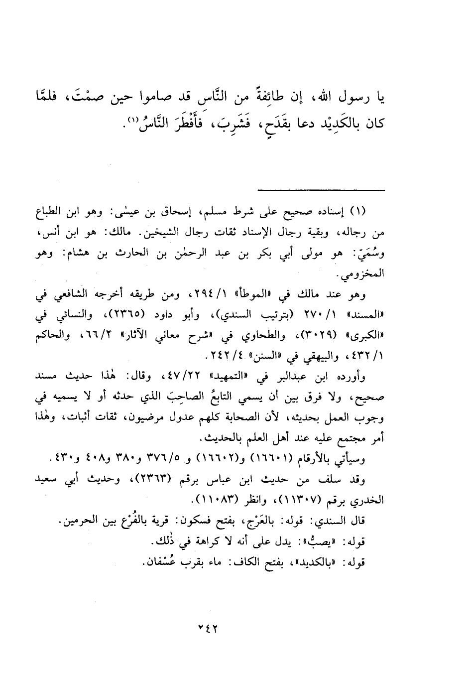 يَا رَسُولَ اللهِ، إِنَّ طَائِفَةً مِنَ النَّاسِ قَدْ صَامُوا حِينَ صُمْتَ، فَلَمَّا كَانَ بِالْكَدِيدِ " دَعَا بِقَدَحٍ، فَشَرِبَ " فَأَفْطَرَ النَّاسُ (١)
