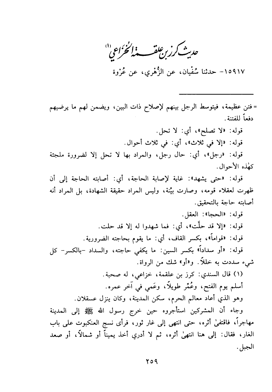 حَدِيثُ كُرْزِ بْنِ عَلْقَمَةَ الْخُزَاعِيِّ (١)