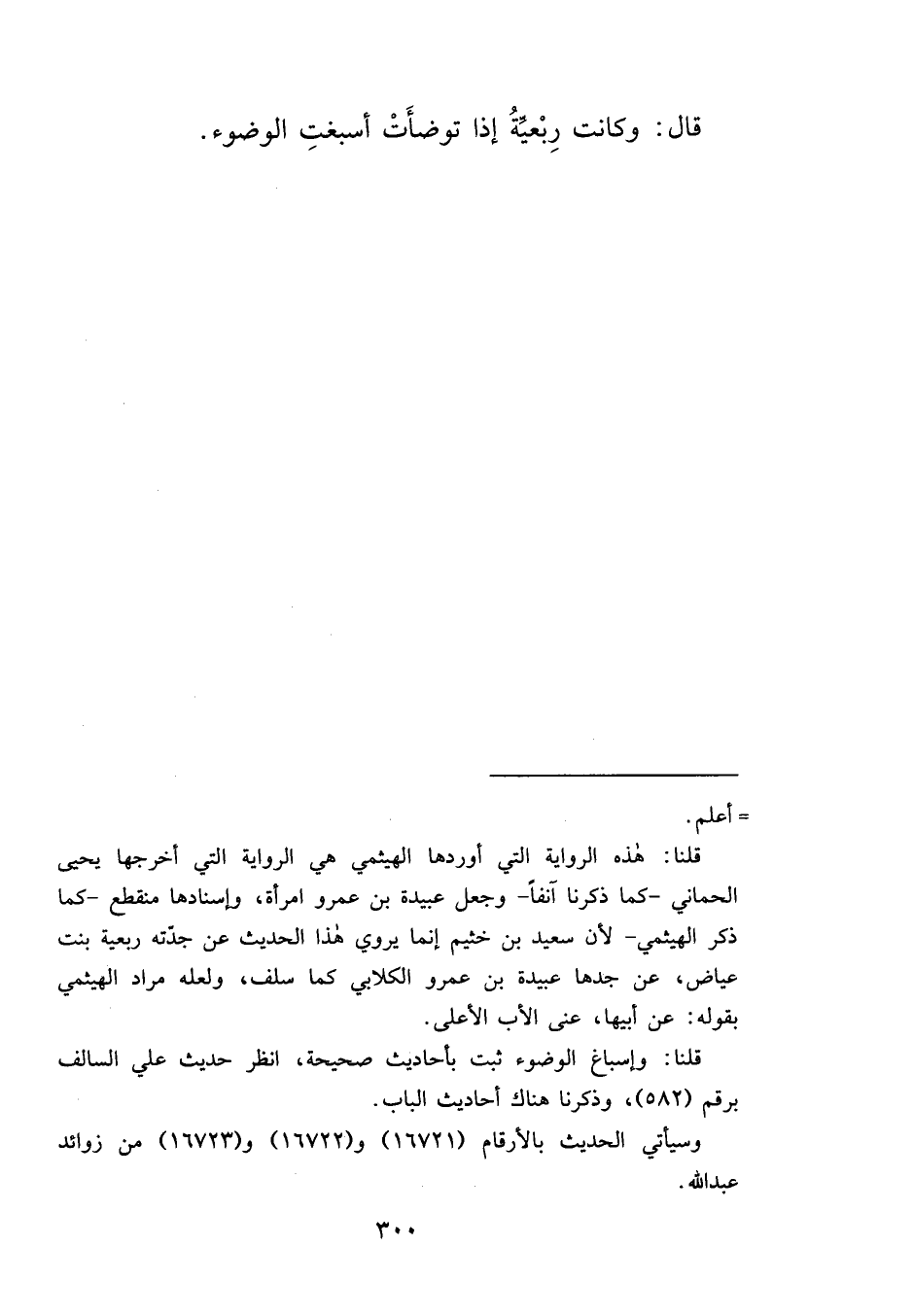 قَالَ: " وَكَانَتْ رِبْعِيَّةُ إِذَا تَوَضَّأَتْ أَسْبَغَتِ الْوُضُوءَ "