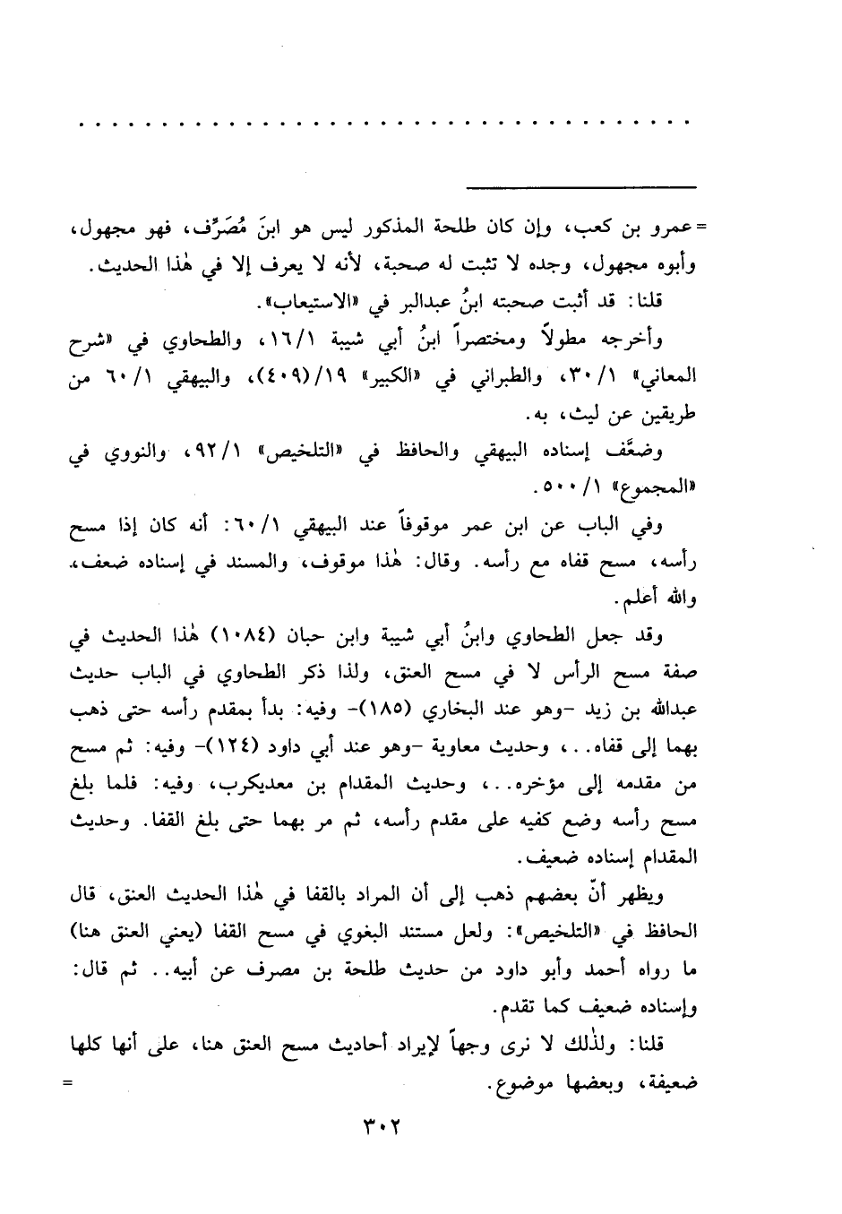 ويظهر أنّ بعضهم ذهب إلى أن المراد بالقفا في هذا الحديث العنق، قال الحافظ في "التلخيص": ولعل مستند البغوي في مسح القفا (يعني العنق هنا) ما رواه أحمد وأبو داود من حديث طلحة بن مصرف عن أبيه.. ثم قال: وإسناده ضعيف كما تقدم.