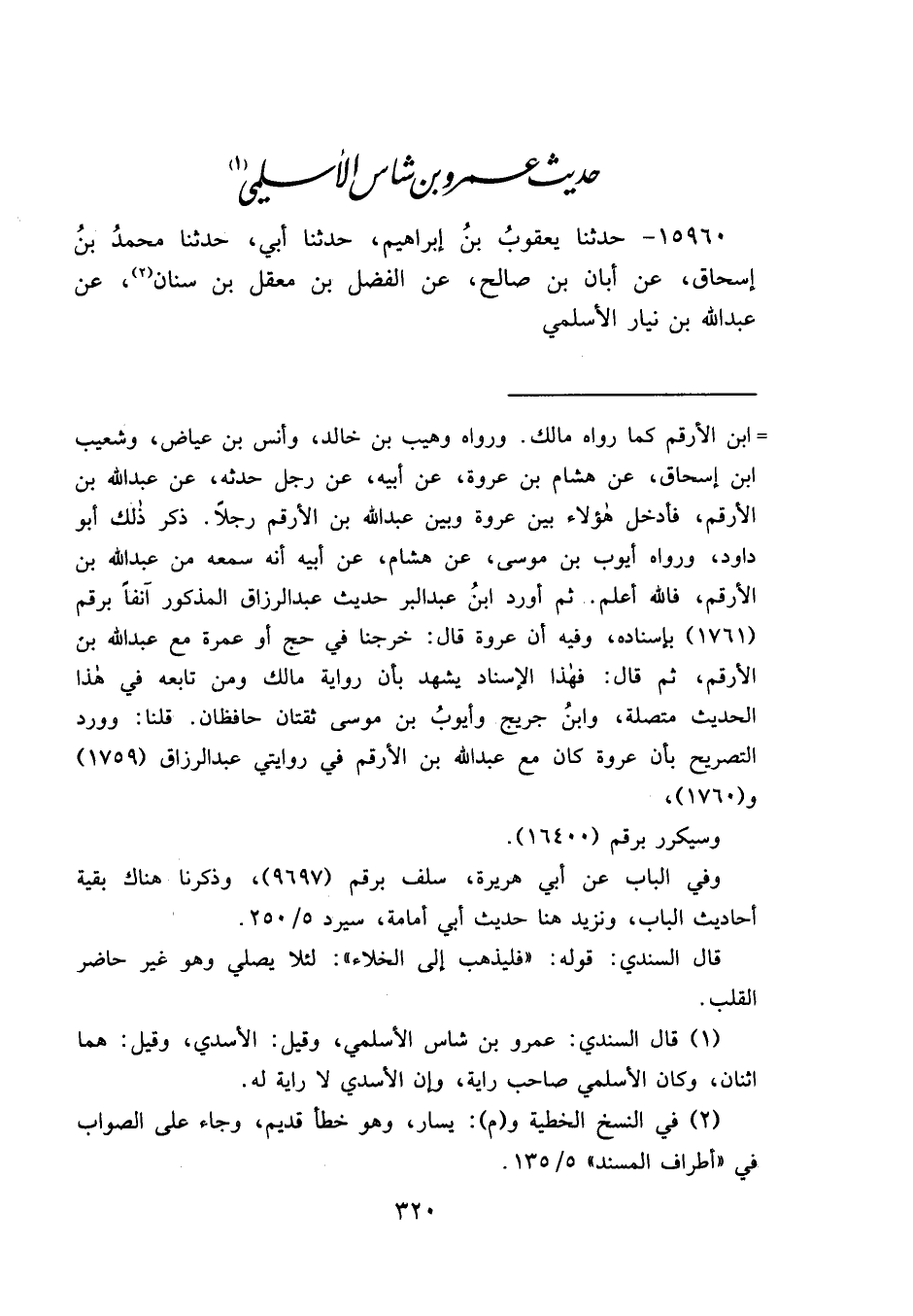حَدِيثُ عَمْرِو بْنِ شَاسٍ الْأَسْلَمِيِّ (١)