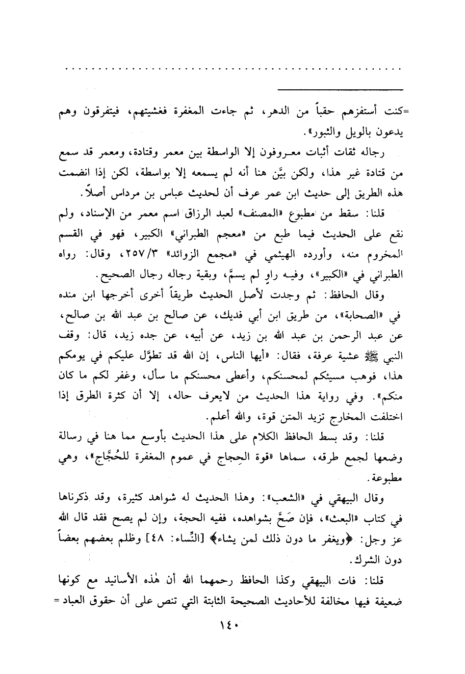 قلنا: وقد بسط الحافظ الكلام على هذا الحديث بأوسع مما هنا في رسالة وضعها لجمح طرقه، سماها "قوة الحِجاج في عموم المغفرة للحُجَّاج"، وهي مطبوعة.