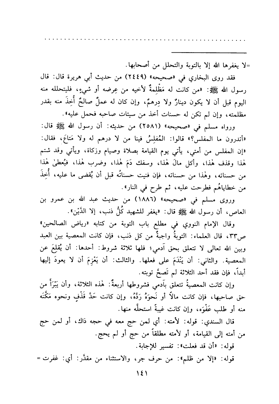 = لا يغفرها الله إلا بالتوبة والتحلل من أصحابها.