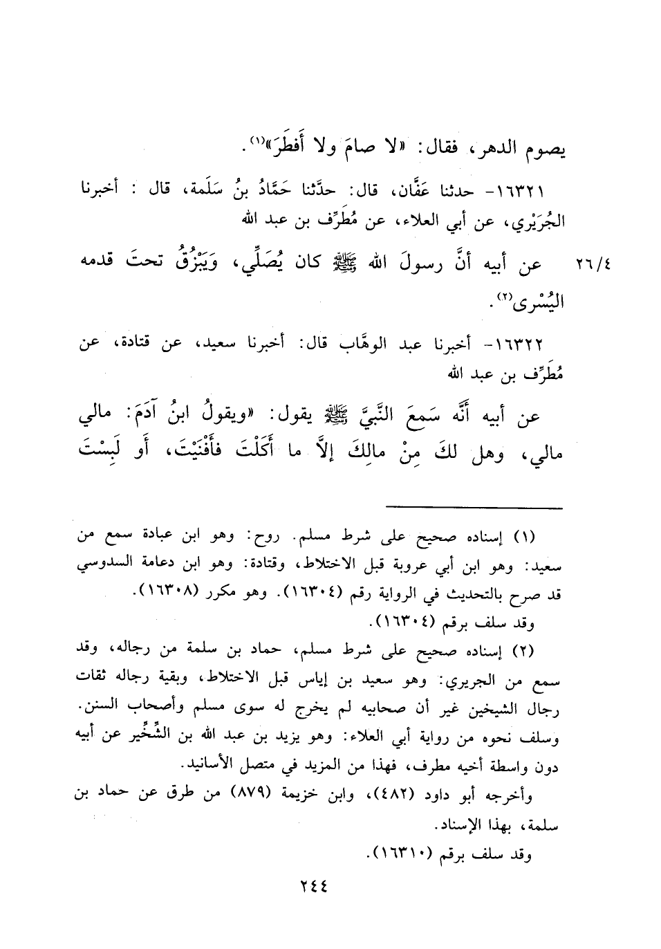 وسلف نحوه من رواية أبي العلاء: وهو يزيد بن عبد الله بن الشخير عن أبيه دون واسطة أخيه مطرف، فهذا من المزيد في متصل الأسانيد.