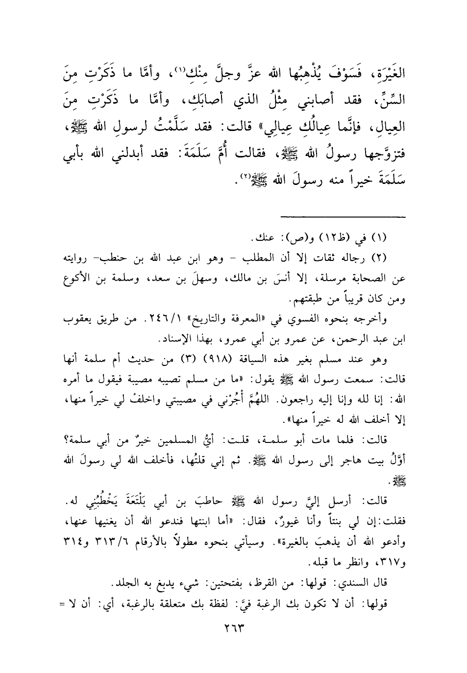 فقلت: إن لي بنتاً وأنا غيورٌ، فقال. "أما ابنتها فندعو الله أن يغنيها عنها، وأدعو الله أن يذهبَ بالغيرة". وسيأتي بنحوه مطولاً بالأرقام ٦/٣١٣ و٣١٤ و٣١٧، وانظر ما قبله.
