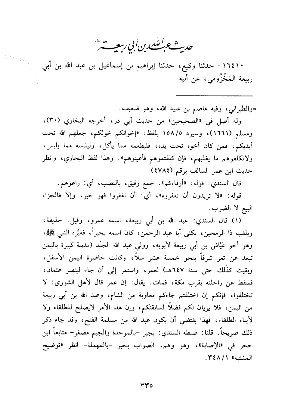 حَدِيثُ عَبْدِ اللهِ بْنِ أَبِي رَبِيعَةَ (١)