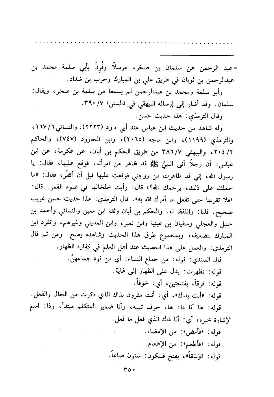 = عبد الرحمن عن سلمان بن صخر، مرسلاً وقُرِنَ بأبي سلمة محمد بن عبد الرحمن بن ثوبان في طريق علي بن المبارك وحرب بن شداد.