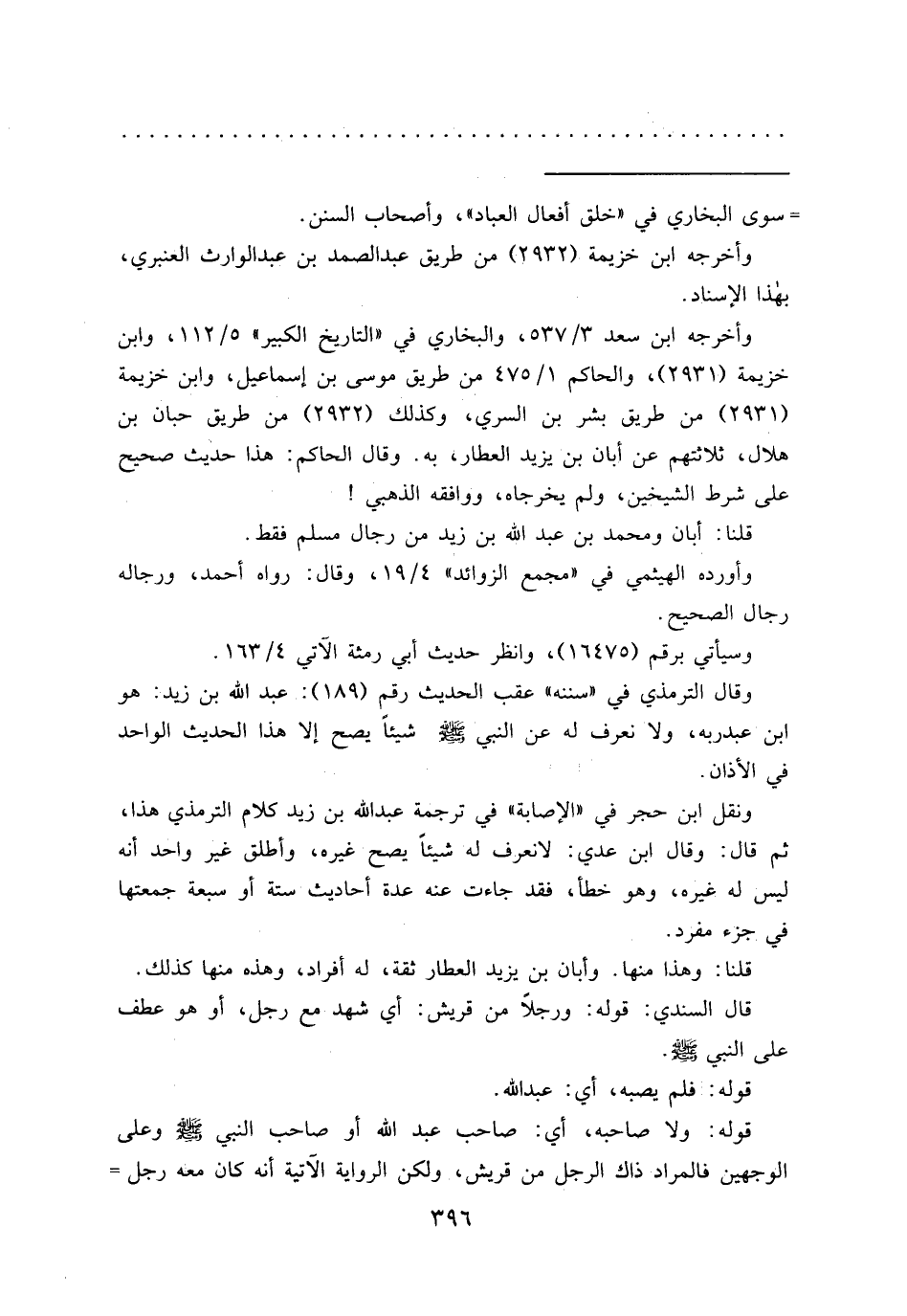 ونقل ابن حجر في "الإصابة" في ترجمة عبد الله بن زيد كلام الترمذي هذا، ثم قال: وقال ابن عدي: لا نعرف له شيئاً يصح غيره، وأطلق غير واحد أنه ليس له غيره، وهو خطأ، فقد جاءت عنه عدة أحاديث ستة أو سبعة جمعتها في جزء مفرد.