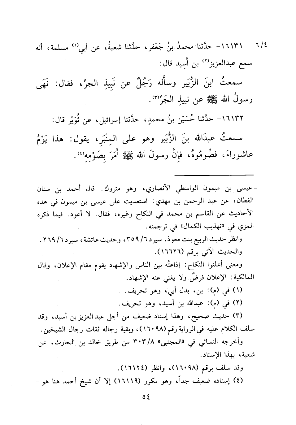 ١٦١٣٢ - حَدَّثَنَا حُسَيْنُ بْنُ مُحَمَّدٍ، حَدَّثَنَا إِسْرَائِيلُ، عَنْ ثُوَيْرٍ، قَالَ: سَمِعْتُ عَبْدَ اللهِ بْنَ الزُّبَيْرِ، وَهُوَ عَلَى الْمِنْبَرِ يَقُولُ: " هَذَا يَوْمُ عَاشُورَاءَ، فَصُومُوه فَإِنَّ رَسُولَ اللهِ صَلَّى اللهُ عَلَيْهِ وَسَلَّمَ أَمَرَ بِصَوْمِهِ " (٤)