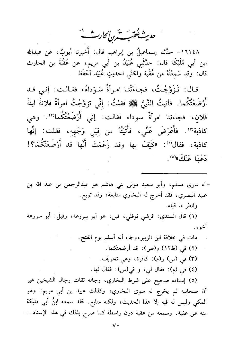 حَدِيثُ عُقْبَةَ بْنِ الْحَارِثِ (١)