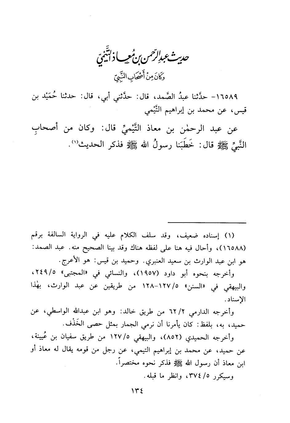 حَدِيثُ عَبْدِ الرَّحْمَنِ بْنِ مُعَاذٍ التَّيْمِيِّ وَكَانَ مِنْ أَصْحَابِ النَّبِيِّ