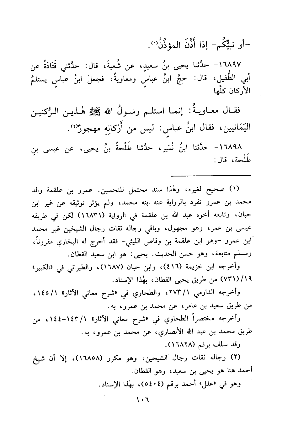 (٢) رجاله ثقات رجال الشيخين، وهو مكرر (١٦٨٥٨) ، إلا أن شيخ أحمد هنا هو يحيى بن سعيد، وهو القطان.
