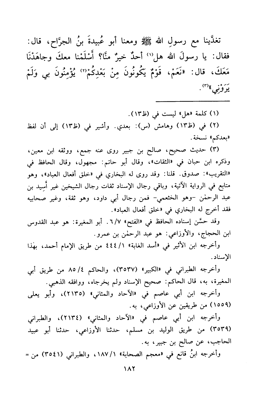 وأخرجه ابن أبي عاصم في "الآحاد والمثاني" (٢١٣٤) ، والطبراني (٣٥٣٩) من طريق الوليد بن مسلم، حدثنا الأوزاعي، حدثنا أبو عبيد الحاجب، عن صالح بن جبير، به.