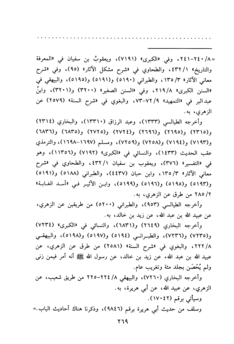 وأخرجه البخاري (٢٦٤٩) و (٦٨٣١) ، والنسائي في "الكبرى" (٧٢٣٤) و (٧٢٣٥) و (٧٢٣٦) ، والطبراني (٥١٩٤) و (٥١٩٧) و (٥١٩٨) ، والبيهقي ٨/٢٢٢، والبغوي في "شرح السنة" (٢٥٨١) من طرق عن الزهري، عن عبيد الله بن عبد الله، عن زيد بن خالد، عن رسول الله صَلَّى اللهُ عَلَيْهِ وَسَلَّمَ أنه أمر فيمن زنى ولم يُحْصَن بجلد مئة وتغريب عام.