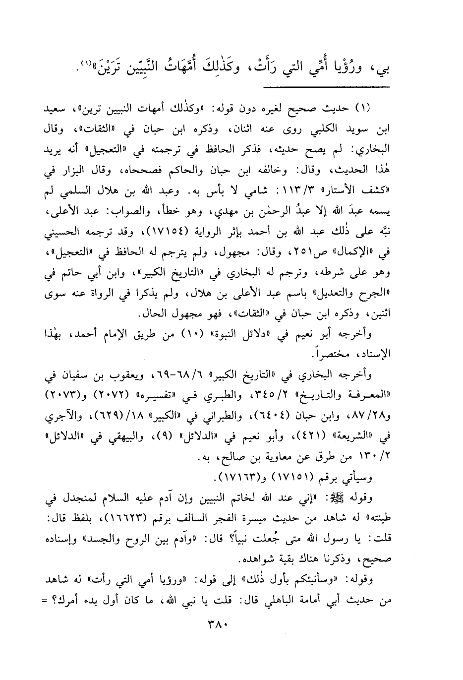 (١) حديث صحيح لغيره دون قوله: "وكذلك أمهات النبيين ترين"، سعيد ابن سويد الكلبي روى عنه اثنان، وذكره ابن حبان في "الثقات"، وقال البخاري: لم يصح حديثه، فذكر الحافظ في ترجمته في "التعجيل" أنه يريد هذا الحديث، وقال: وخالفه ابن حبان والحاكم فصححاه، وقال البزار في