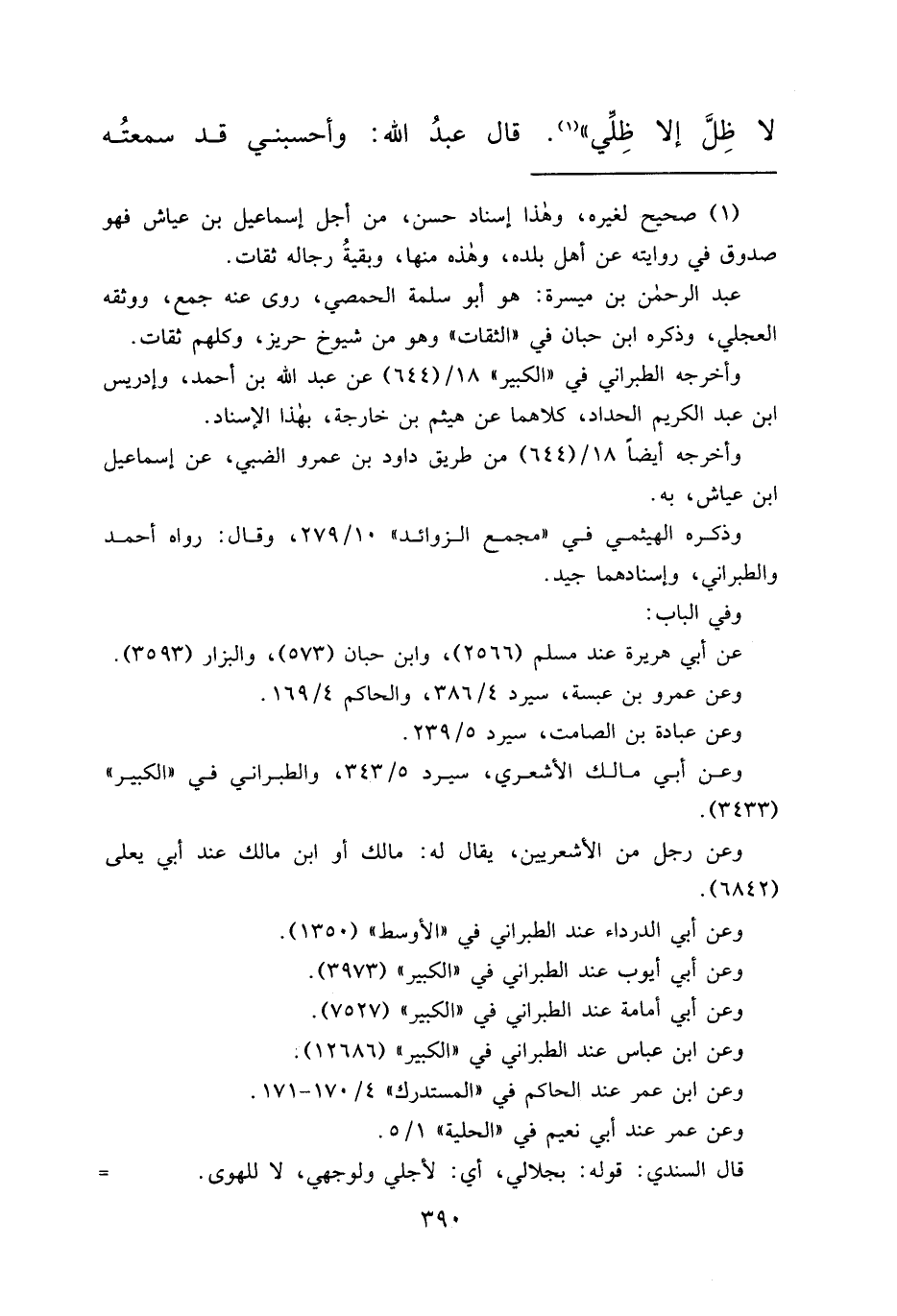 لَا ظِلَّ إِلَّا ظِلِّي " (١) قَالَ عَبْدُ اللهِ: " وَأَحْسَبُنِي قَدْ سَمِعْتُهُ