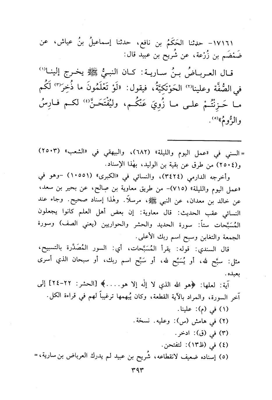 (٥) إسناده ضعيف لانقطاعه، شُريح بن عبيد لم يدرك العرباض بن سارية،=