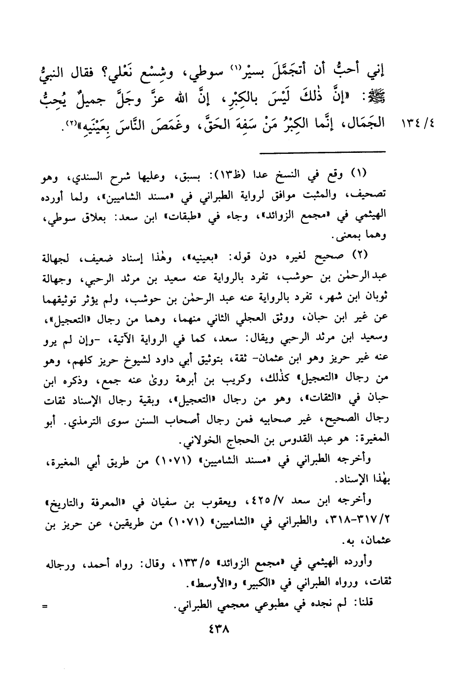 إِنِّي أُحِبُّ أَنْ أَتَجَمَّلَ بِسَيرِ (١) سَوْطِي، وَشِسْعِ نَعْلِي؟ فَقَالَ النَّبِيُّ صَلَّى اللهُ عَلَيْهِ وَسَلَّمَ: " إِنَّ ذَلِكَ لَيْسَ بِالْكِبْرِ، إِنَّ اللهَ عَزَّ وَجَلَّ جَمِيلٌ يُحِبُّ الْجَمَالَ، إِنَّمَا الْكِبْرُ مَنْ سَفِهَ الْحَقَّ، وَغَمَصَ النَّاسَ بِعَيْنَيْهِ " (٢)
