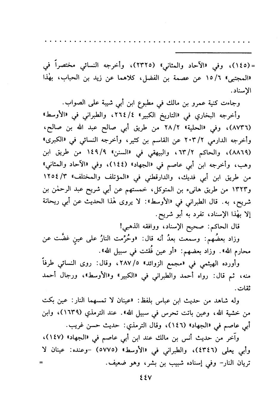 وزاد بعضُهم: وسمعت بعدُ أنه قال: "وحُرِّمت النارُ على عين غضَّت عن محارم الله". وزاد بعضهم: "أو عين فُقئت في سبيل الله".